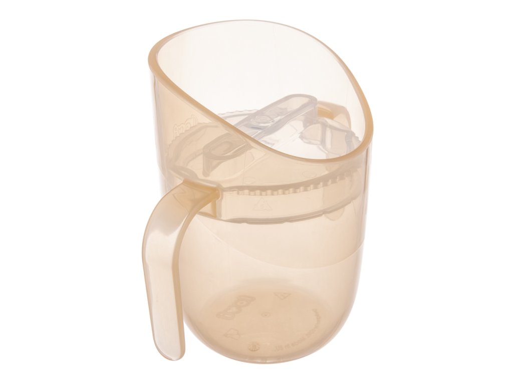 Umožňuje kontrolovat množství tekutiny – díky průhledným stěnám hrnečku a vložce vidí dítě tekutinu a rodič ví, kolik dítě vypilo.