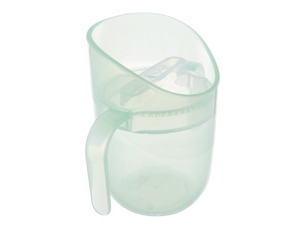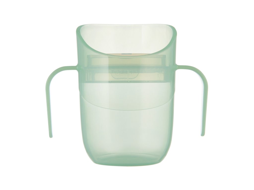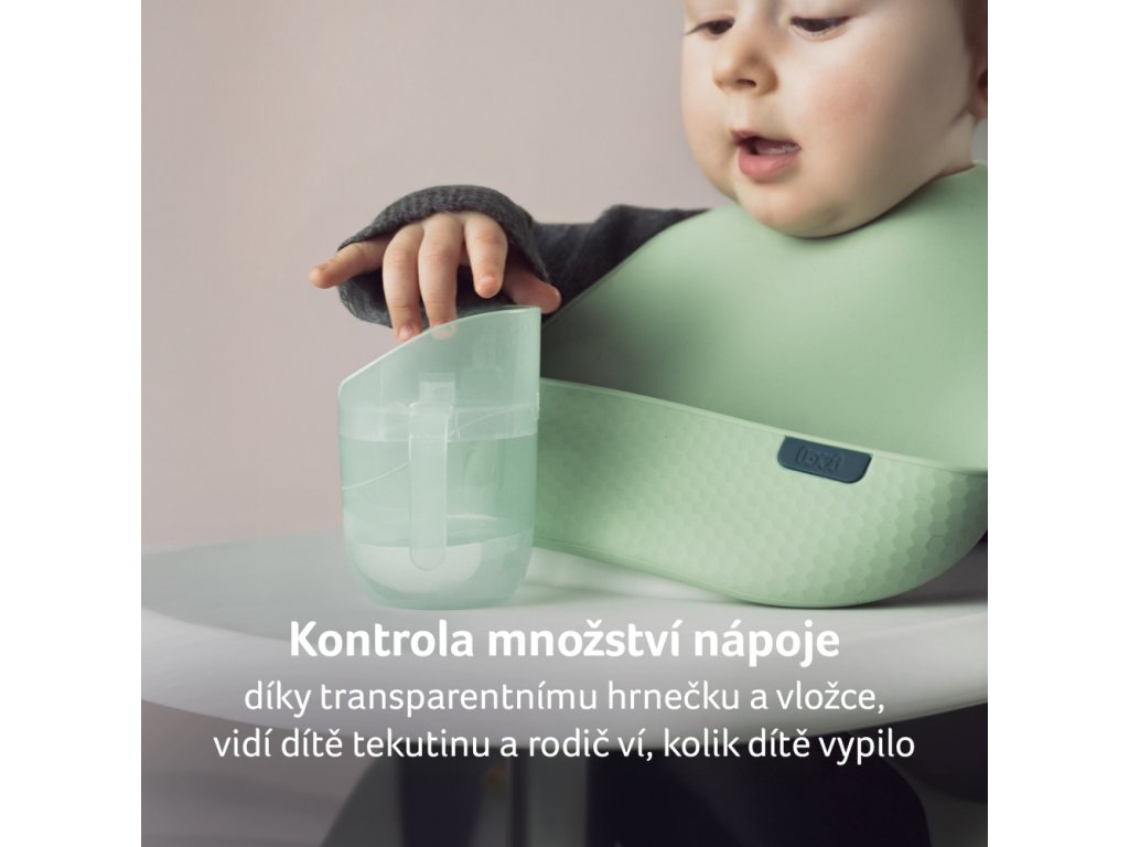 Umožňuje kontrolovat množství tekutiny – díky průhledným stěnám hrnečku a vložce vidí dítě tekutinu a rodič ví, kolik dítě vypilo.