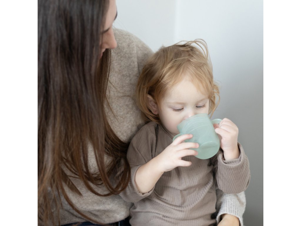 Lehký a malý hrneček s profilovanými rukojeťmi přizpůsobenými malým dětským ručičkám.