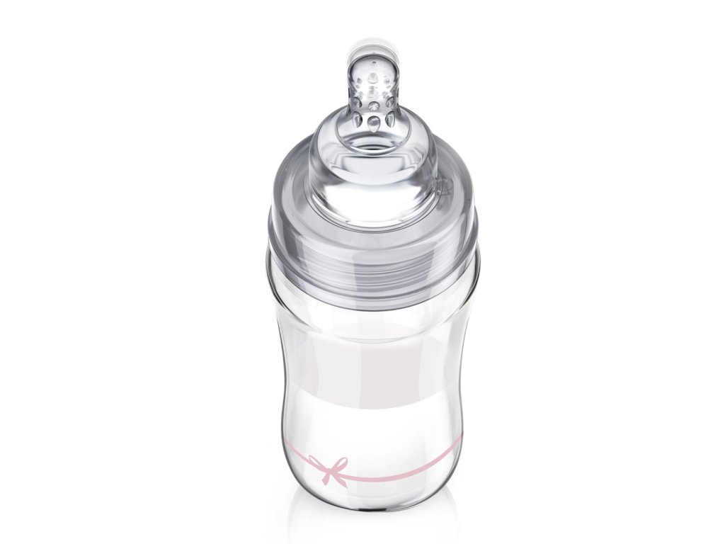 Je vyrobena z nejkvalitnějšího, velmi lehkého borokřemičitého skla bez postranního švu, které je bezpečné pro dítě.