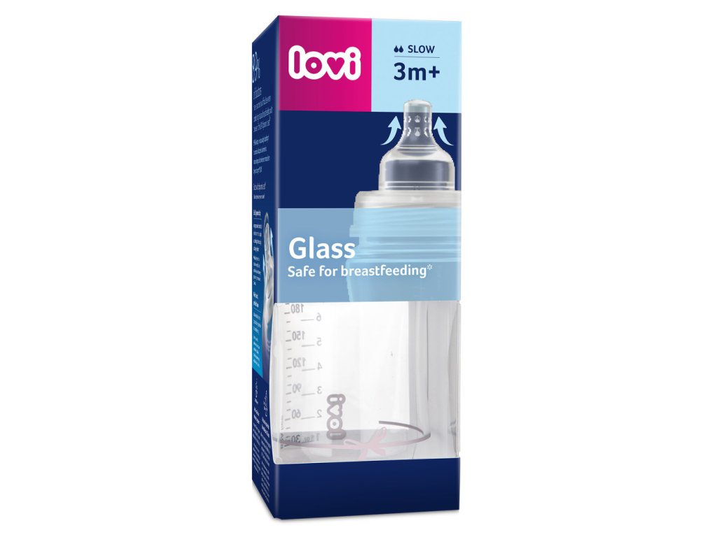 Nová lehká lahev o objemu 250ml z kolekce BABY SHOWER je vyrobena z odolného borokřemičitého skla. Lahev disponuje dynamickou silikonovou savičkou LOVI, díky které povzbuzuje dítě k aktivní činnosti během sání, stejně jako u kojení a nenarušuje tak sací reflex miminka. Minimalistický design představuje nejnovější trendy a barvy. Lahev neobsahuje BPA.