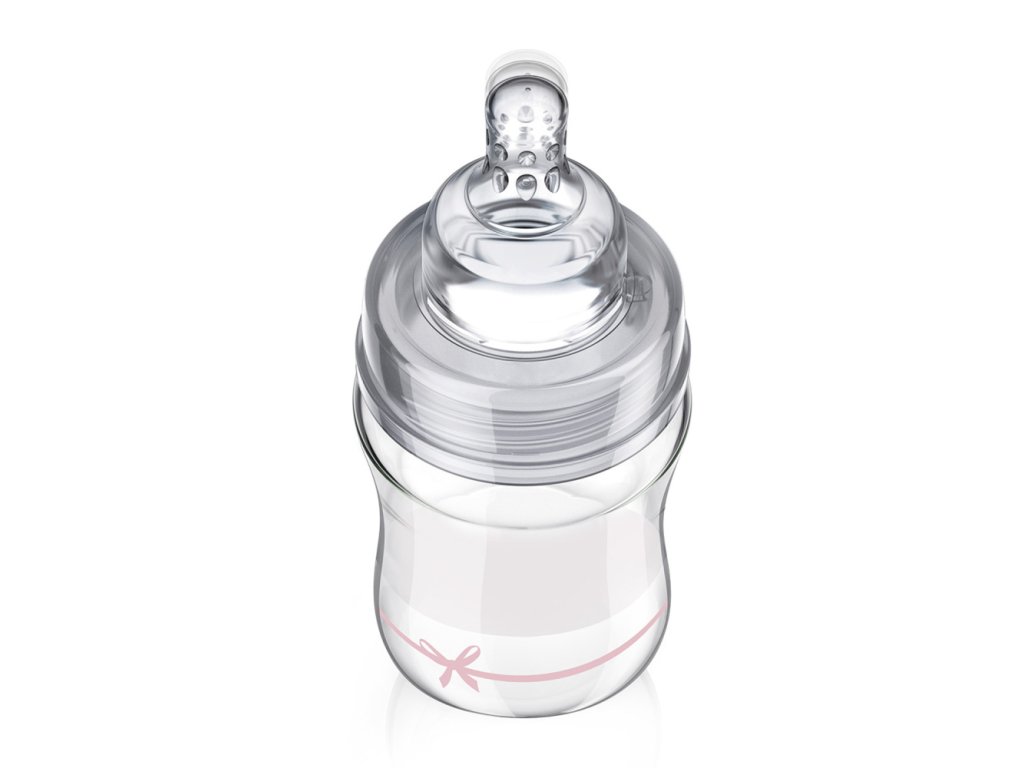 Nová lehká lahev o objemu 150ml z kolekce BABY SHOWER je vyrobena z odolného borokřemičitého skla. Lahev disponuje dynamickou silikonovou savičkou LOVI, díky které povzbuzuje dítě k aktivní činnosti během sání, stejně jako u kojení a nenarušuje tak sací reflex miminka. Minimalistický design představuje nejnovější trendy a barvy. Lahev neobsahuje BPA.