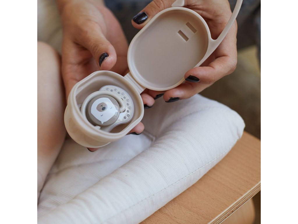 Otevírací box chrání dudlík před ušpiněním. Je vyroben z bezpečného plastu, který se dobře udržuje v čistotě.