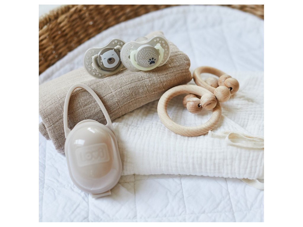 Obal je určen na úschovu dudlíku. Zabraňuje jeho ušpinění nebo ztrátě. Prakticky a snadno se připevňuje ke kočárku, postýlce nebo autosedačce. Jeho výhody oceníte zejména na procházce.