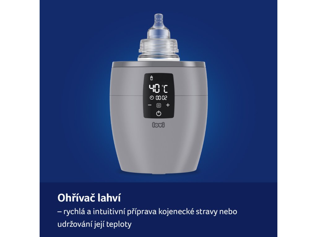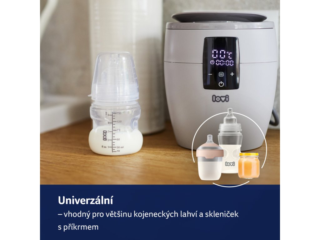 Ohřívač lahví LOVI 6 v 1. Rychlé a rovnoměrné ohřátí. Intuitivní ovládání na přehledné obrazovce.