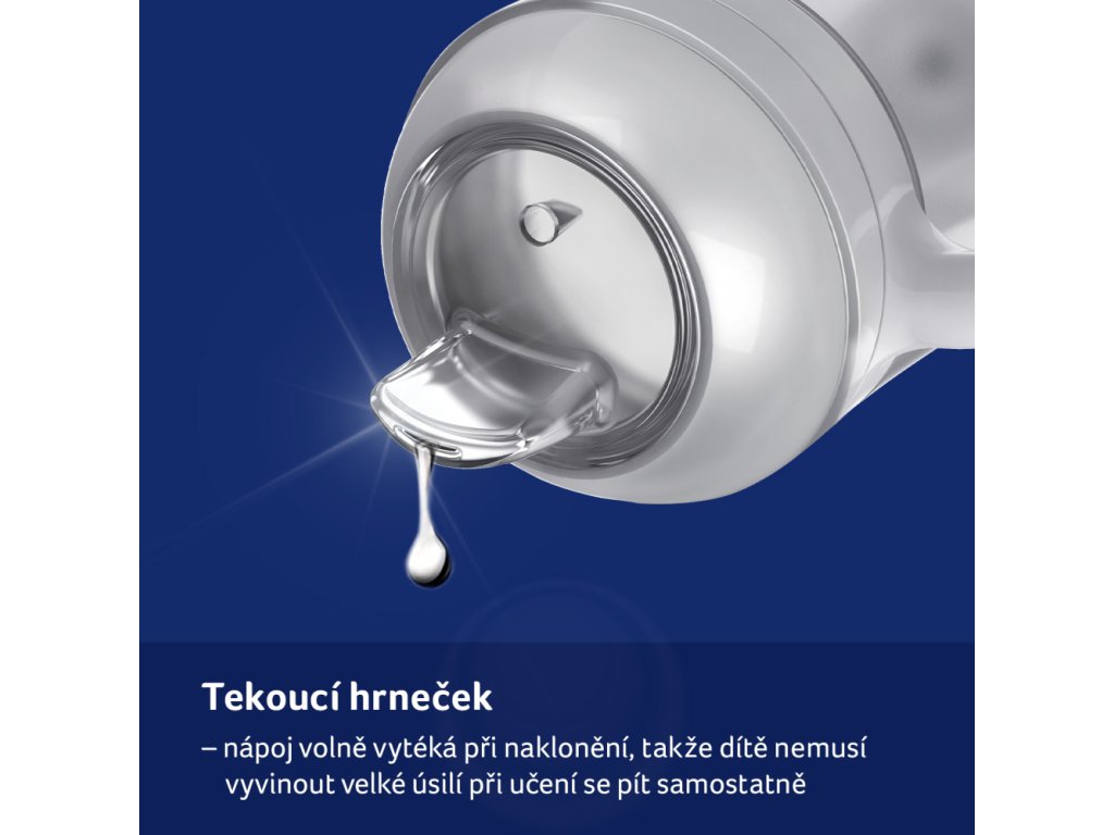 Výlevka pítka - pítko je speciálně designováno tak, aby tekutina mohla lehce kapat. Proto dítě nemusí vyvinout příliš mnoho snahy do učení nové dovednosti a nebude tak brzy odrazeno.