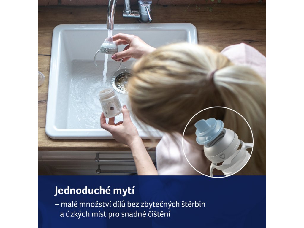 Umožňuje jednoduchý přechod od pití z lahve k pití z hrnečku