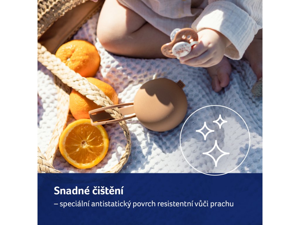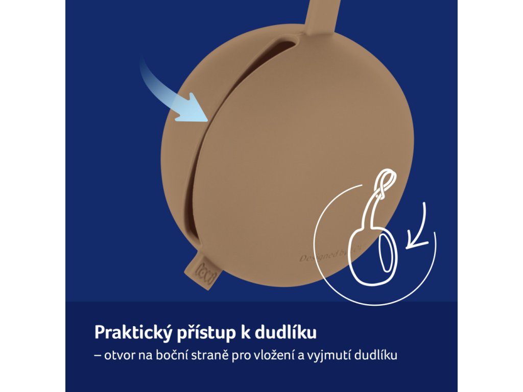 Flexibilní rukojeť pouzdra snadno připevníte na tašku nebo kočárek a speciálně navržený postranní otvor umožňuje vložení a vyjmutí dudlíku bez nutnosti oddělování celého pouzdra .