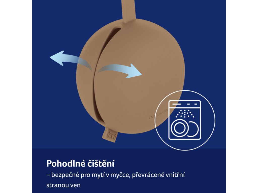 Pokud obrátíte pouzdro na dudlík naruby, lze mýt v myčce na nádobí.