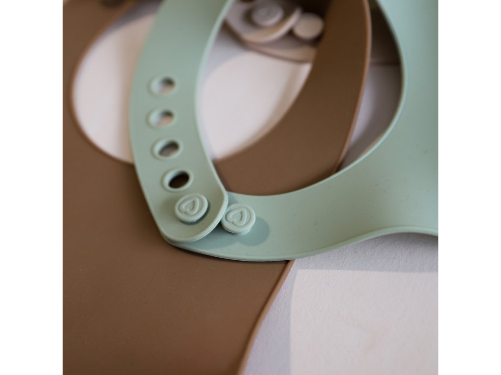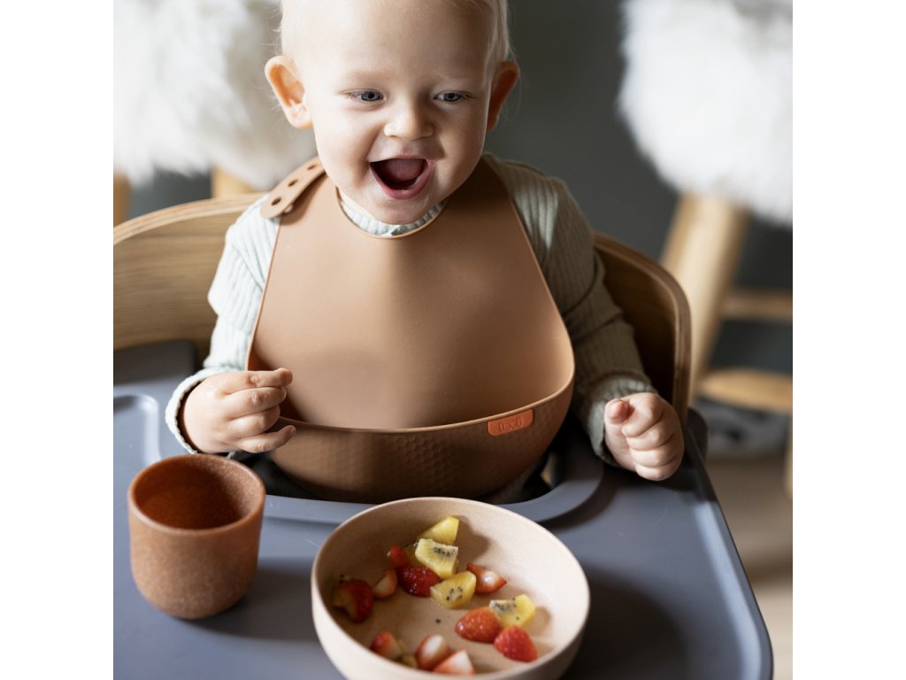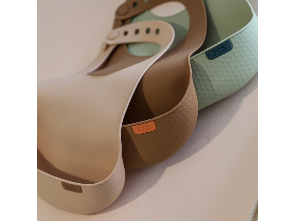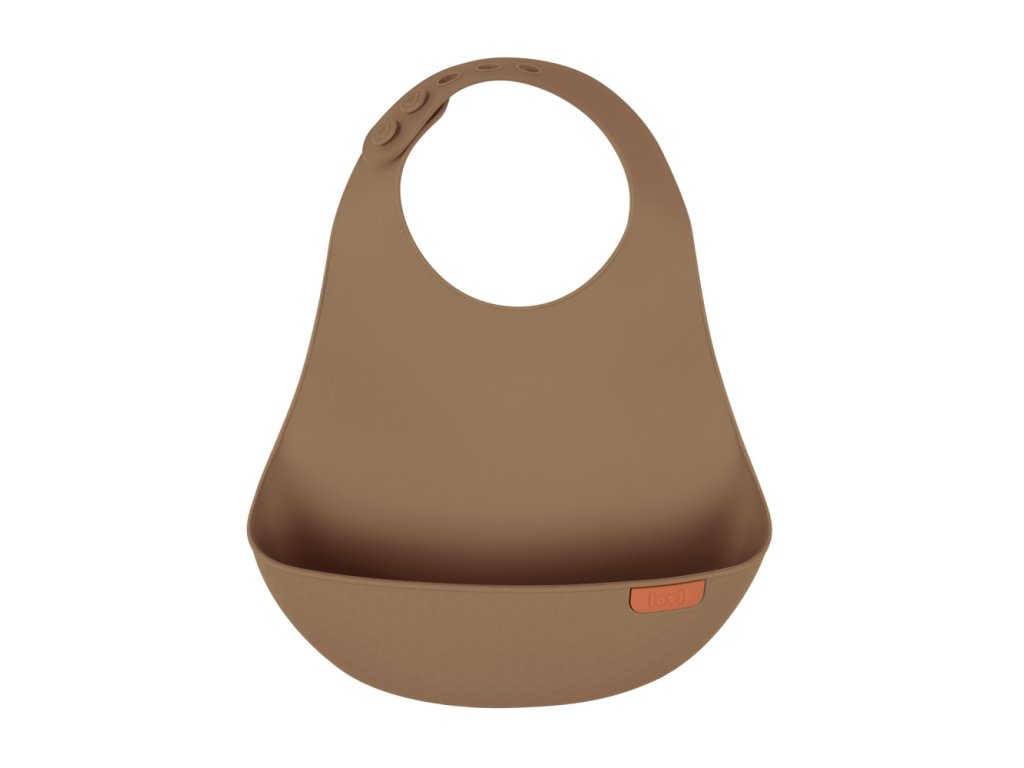 LOVI Silikonový bryndáček s kapsou je velkým pomocníkem pro rodiče - chrání před nečistotami v době, kdy se dítě učí samostatně jíst. Je vyroben z lehkého, měkkého a bezpečného silikonu. Pevná a hluboká kapsa zachycuje zbytky jídla, pohodlně obepíná bříško a zasahuje doširoka do boků miminka. Nastavitelná spona a ergonomický tvar bryndáku, zejména jeho tvarované strany, zajišťují volnost pohybu. Bryndáček má originální design díky unikátní struktuře kapsy a také se snadno čistí a je vhodný do myčky.