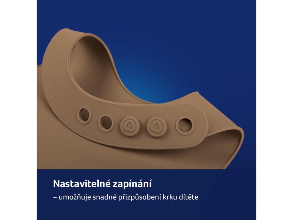 Umožňuje přizpůsobit bryndáček dítěti na krk.