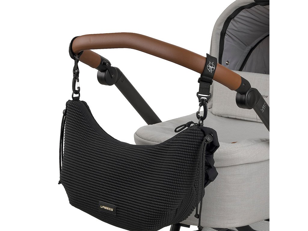 lze připevnit na kočárek pomocí háčků, nosit přes rameno jako kabelku nebo cross bag