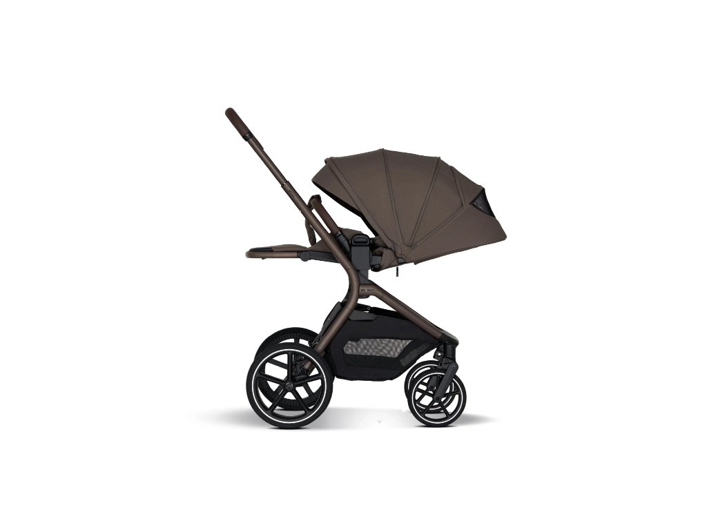 Nabízí flexibilní prostor na nákupy, tašku na plenky a další – se síťovinou a bezpečnou ochranou proti pádu.