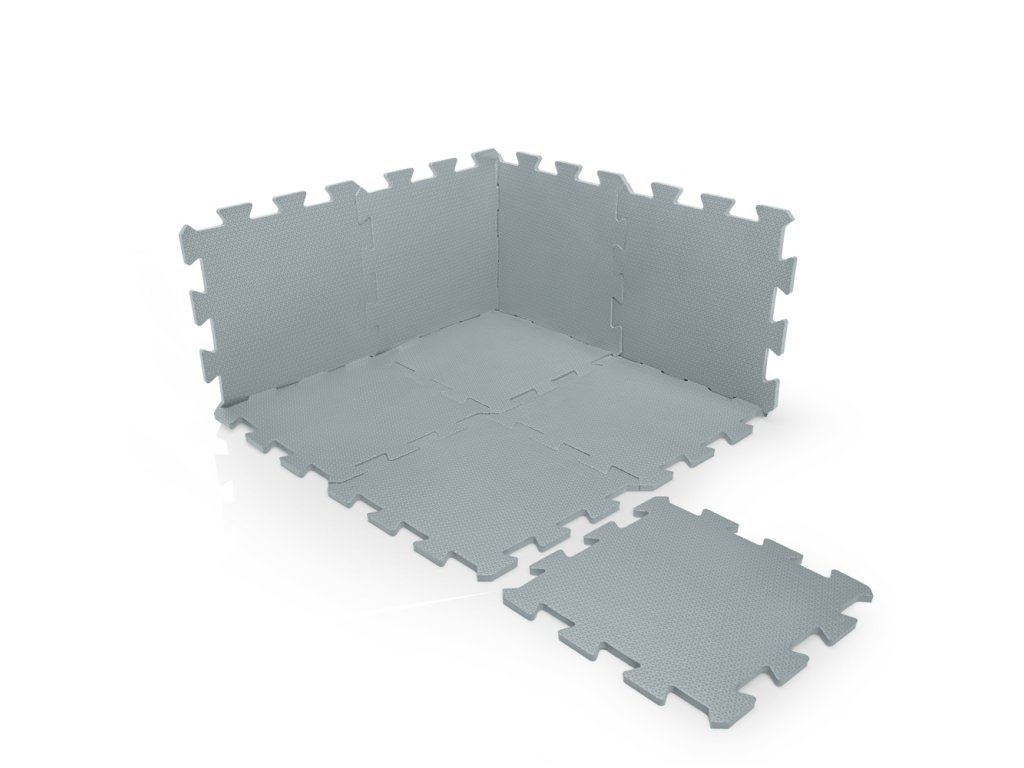 Jednotlivé dlaždice 30 × 30 cm (9 ks) na sebe perfektně navazují. Podložka je vhodná pro děti od narození, vyrobená z nezávadného a příjemného materiálu.
