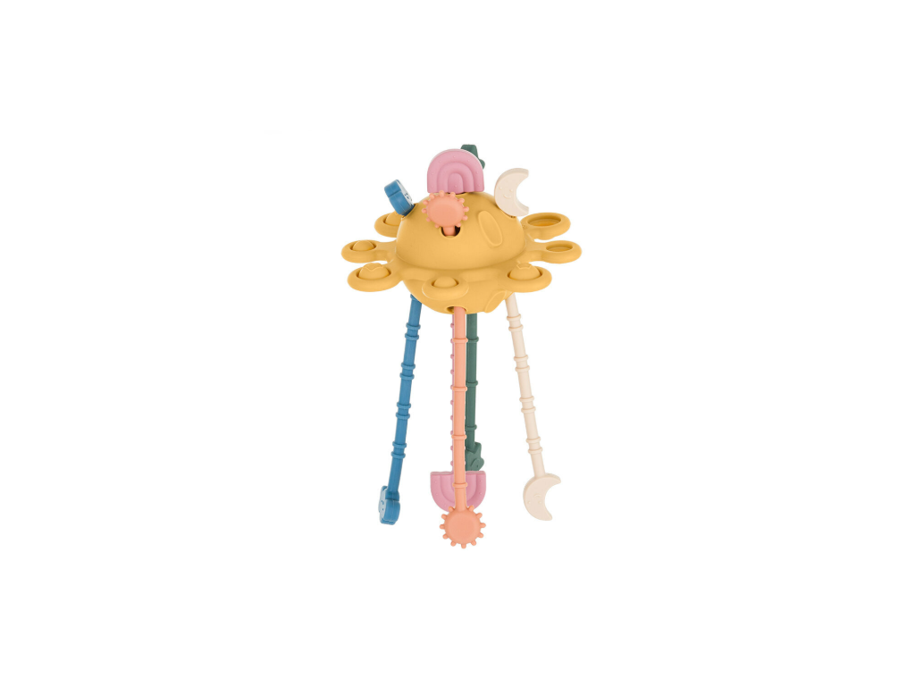 Hračka je vyrobena z nejkvalitnějšího potravinářského silikonu, který zaručuje bezpečnost pro děti od 10 měsíců. Je navržena tak, aby zmírňovala nepohodlí dětských dásní a rozvíjela žvýkací schopnosti a zároveň podporovala cvičení úchopu. Hračka je vyrobena v souladu s metodikou Montessori, která podporuje aktivní, smyslové učení a samostatnost dítěte.