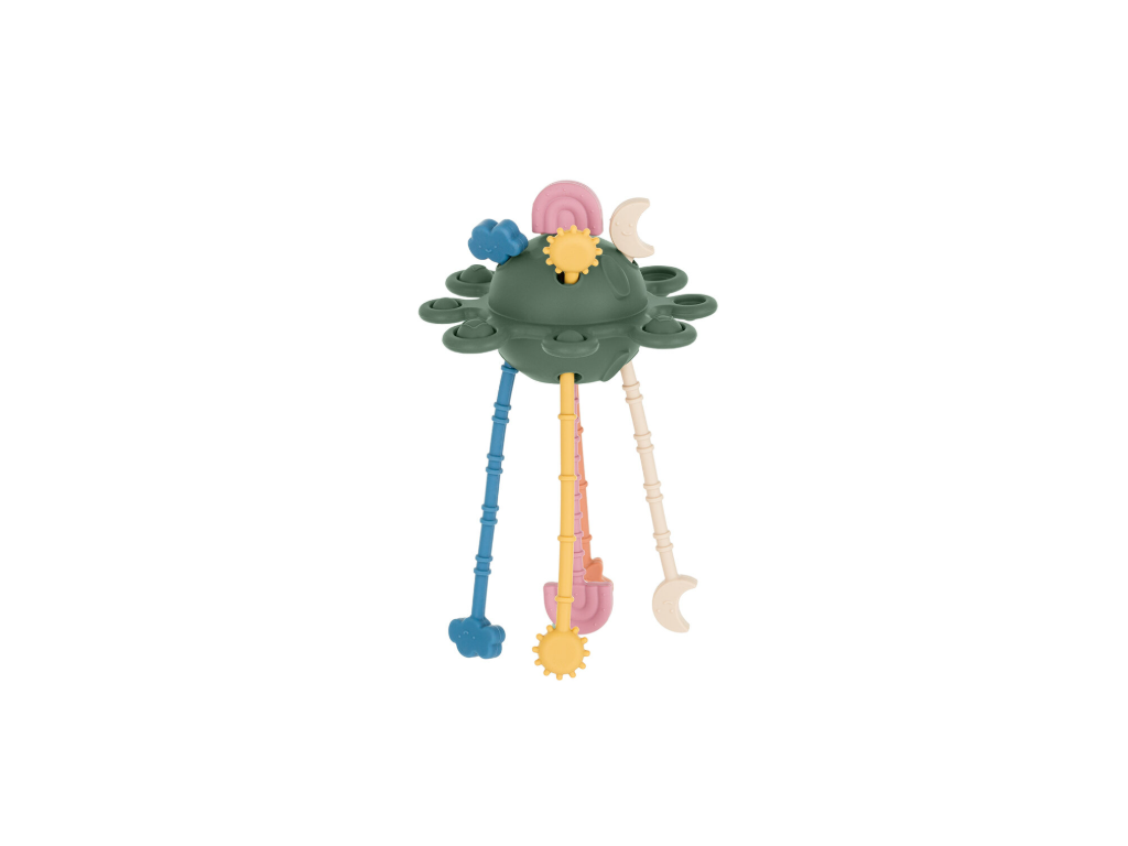 Hračka je vyrobena z nejkvalitnějšího potravinářského silikonu, který zaručuje bezpečnost pro děti od 10 měsíců. Je navržena tak, aby zmírňovala nepohodlí dětských dásní a rozvíjela žvýkací schopnosti a zároveň podporovala cvičení úchopu. Hračka je vyrobena v souladu s metodikou Montessori, která podporuje aktivní, smyslové učení a samostatnost dítěte.