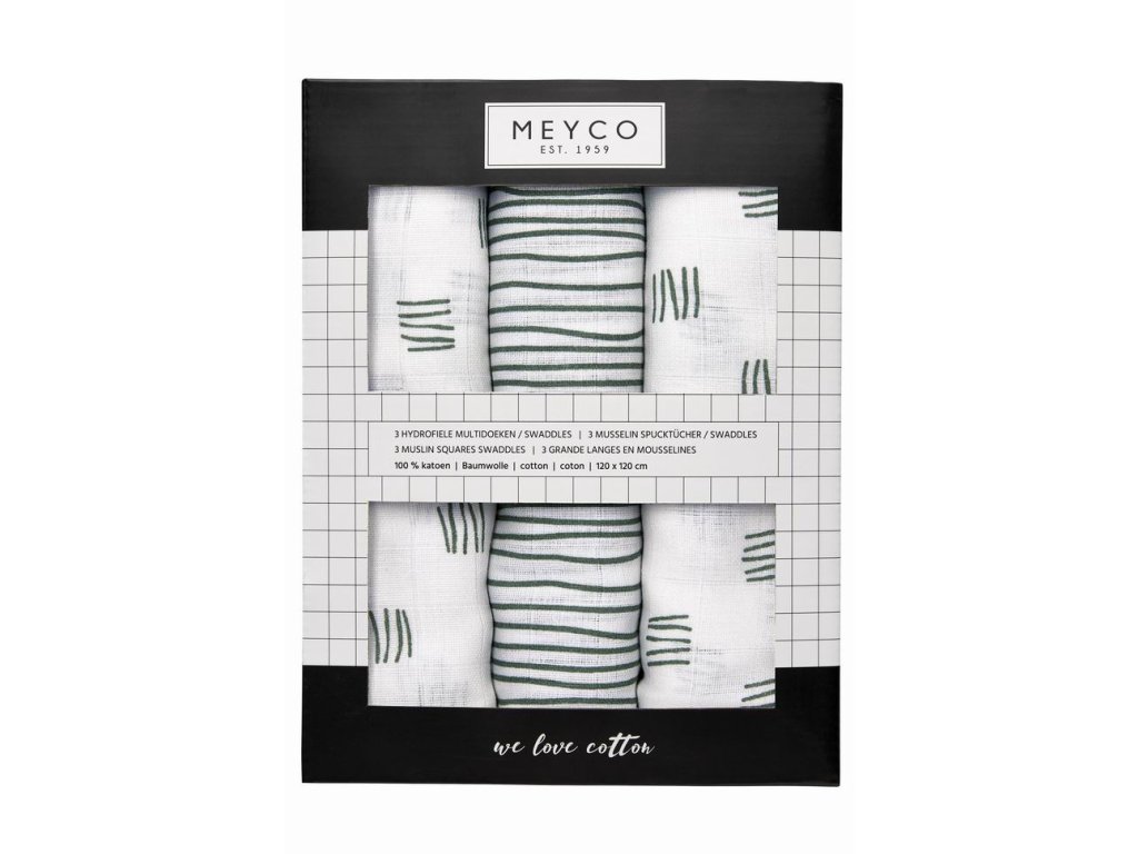 Materiál: 100% bavlnaBalení obsahuje 3 ks.Rozměr: 120 x 120 cmLze prát maximálně na 60 stupňů (extra hygienické)Vhodné do sušičkyLze žehlit (nevyžehlené přijímají více vlhkosti) Informace o výrobci MEYCO b-boo baby & lifestyle GmbHTackenweide 5446446 Emmerich am RheinGermany Phone number: +49 (0)2822 976500 https://www.meycobaby.com/E-mail: info@meycobaby.com Bezpečnostní upozorněníVýrobek není hračka. Nevystavujte blízkosti ohně. Plastový obal držte mimo dosah dítěte, hrozí nebezpečí udušení.Doplňkové parametry