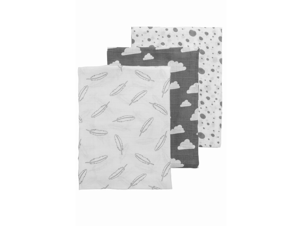Pleny 3-balení Feathers-clouds-dots grey/white