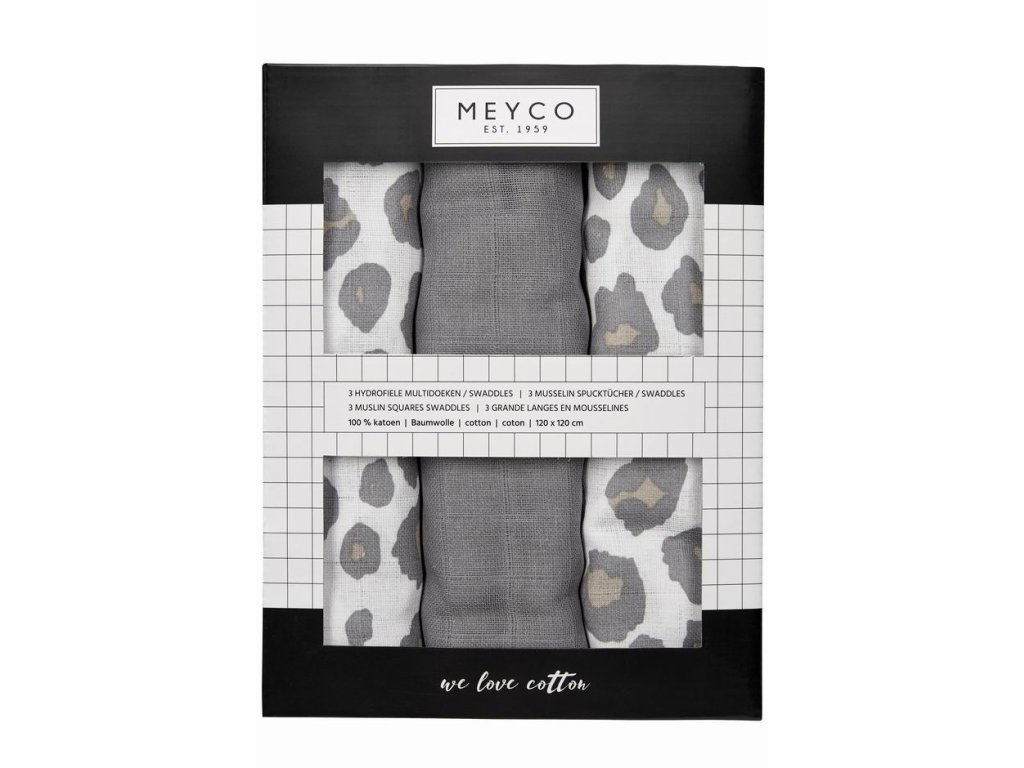 Materiál: 100% bavlnaBalení obsahuje 3 ks.Rozměr: 120 x 120 cmLze prát maximálně na 60 stupňů (extra hygienické)Vhodné do sušičkyLze žehlit (nevyžehlené přijímají více vlhkosti) Informace o výrobci MEYCO b-boo baby & lifestyle GmbHTackenweide 5446446 Emmerich am RheinGermany Phone number: +49 (0)2822 976500 https://www.meycobaby.com/E-mail: info@meycobaby.com Bezpečnostní upozorněníVýrobek není hračka. Nevystavujte blízkosti ohně. Plastový obal držte mimo dosah dítěte, hrozí nebezpečí udušení.Doplňkové parametry