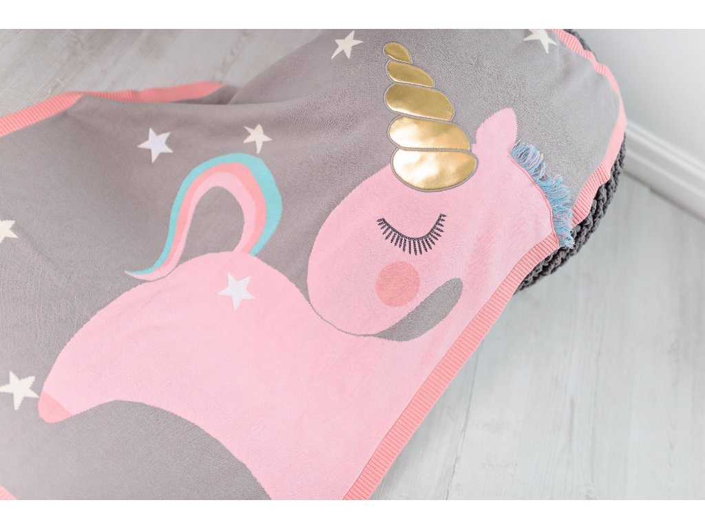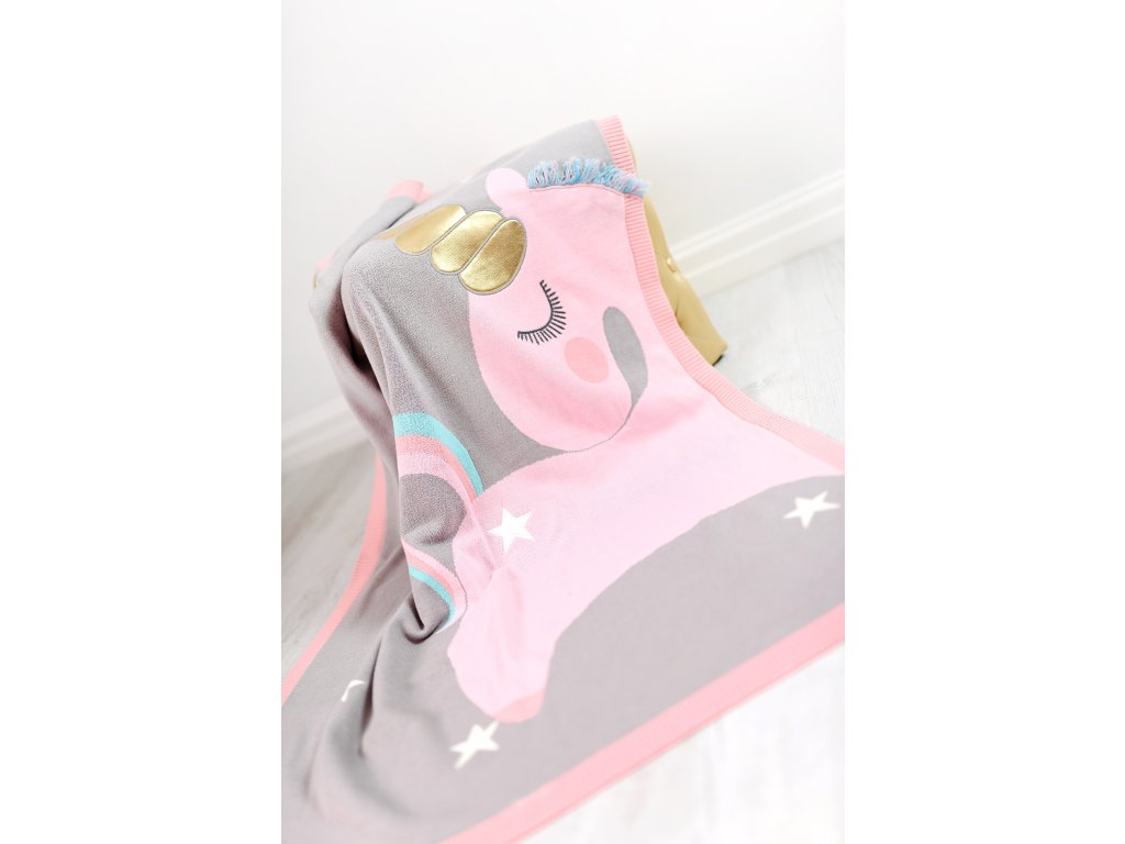 Pletená deka - jednorožec