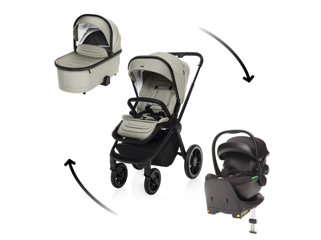 Součástí setu je autosedačka XM Plus i-Size. Autosedačku si můžete zvolit dle vlastního výběru. Standardně je dodávána autosedačka v barvě Boss Grey.