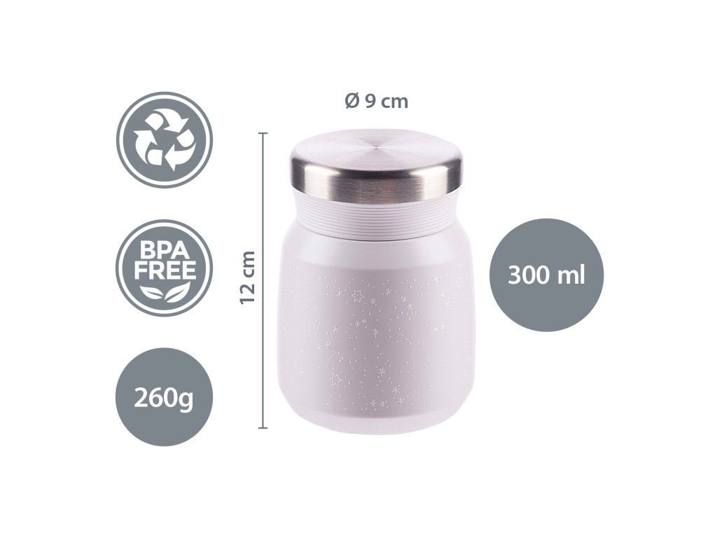 Kvalitní termoska na jídlo a příkrmy o objemu 300 ml uchovává horké jídlo až