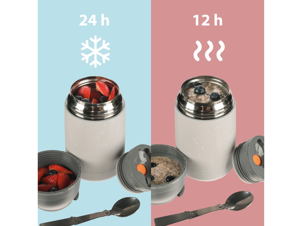 teplou kaši nebo polévku kdekoliv. Víčko termosky lze použít jako hrníček či